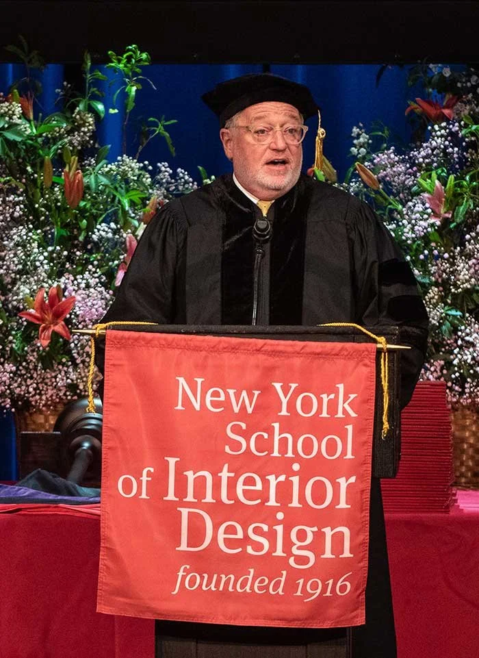 It was meaningful to have Smith speak in tandem with the great design journalist Newell Turner, because they spent 12 years running the Hearst Design Group together. Turner was founding editorial director of the Hearst division that produced Elle Decor, House Beautiful, and Veranda. He is an author, editor, photographer, and design consultant with over 35 years of experience in design and lifestyle magazine publishing. His new book is Mexican: A Journey Through Design (Vendome Press, May 2023). He is also a former New York School of Interior Design trustee who is deeply invested in design education. Turner used the metaphor of a sky full of constellations to describe his approach to design. “Beauty is not merely an aesthetic concept: it is a profound expression of the human experience… . Just as the constellations evoke wonder and awe, the pursuit of beauty can be a guiding star throughout your careers,” he said. “See beauty not only in the grandeur of high-profile or big projects, but also in the seemingly mundane and everyday spaces that shape our lives. Let beauty be your compass, a new North Star.”