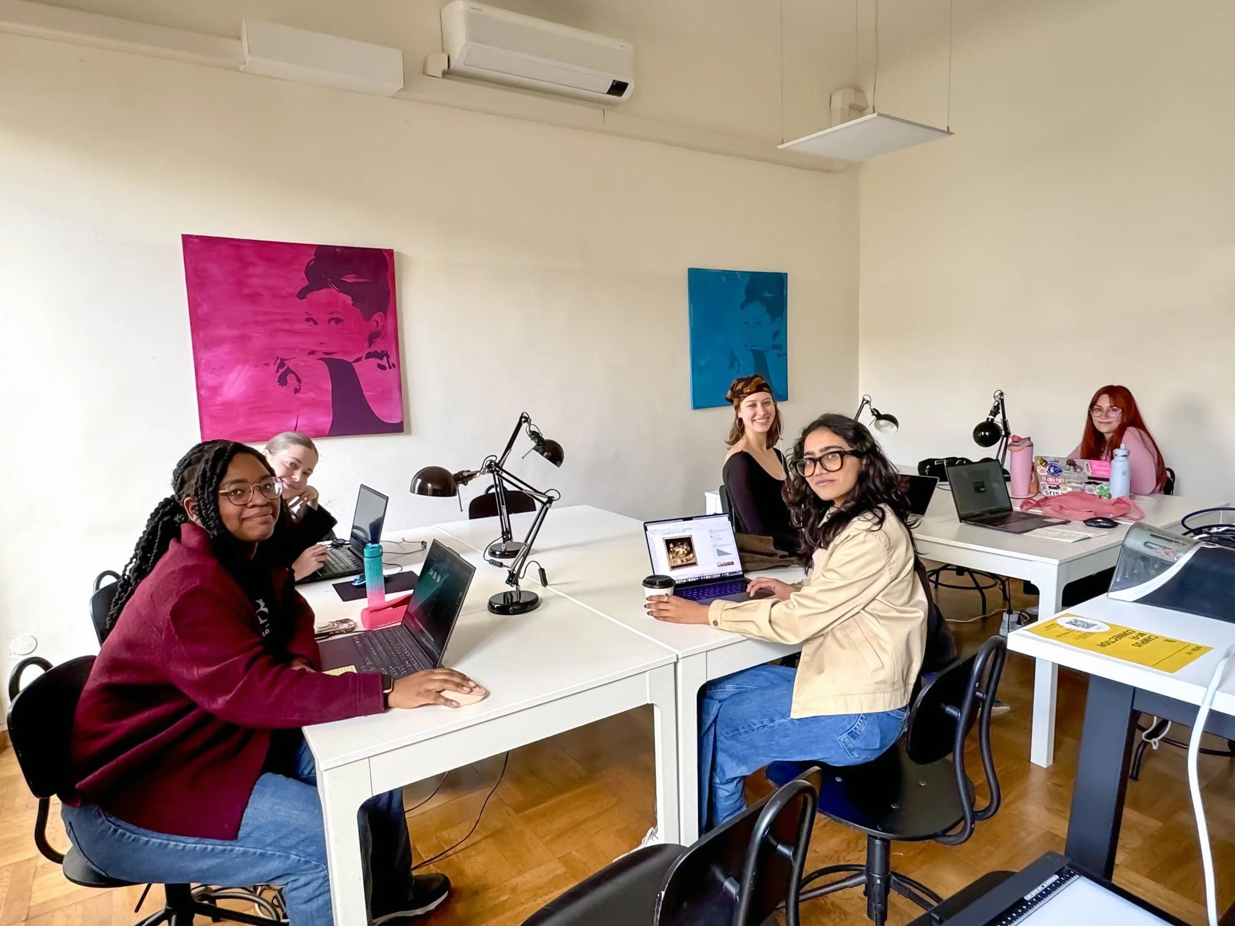 Ashanti King-Wynn (BFA), Natalia Kamesh (BFA), Garvi Shah (BFA), Annika Rea (BFA), and Briana Yannuzzelli (BFA) at the Santa Reparata International School of Art in Florence, Italy