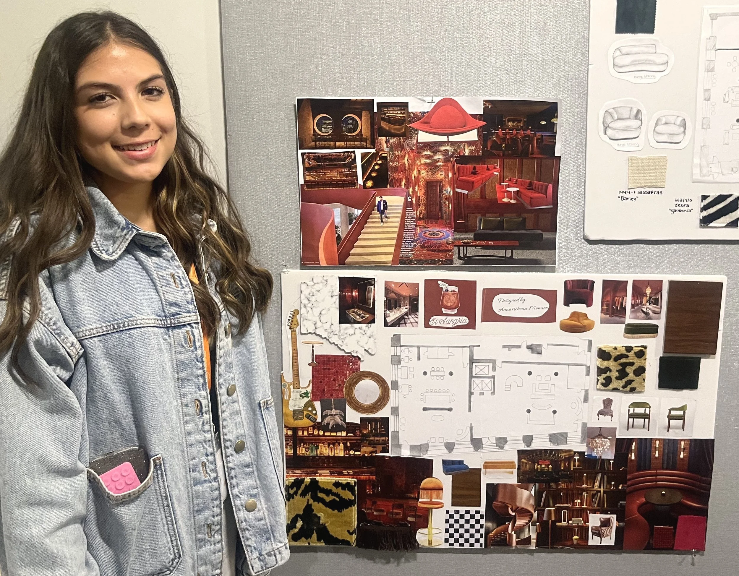 Annavictoria Monaco, is another student who returned for a second summer of NYSID Pre-College to take Pre-College II through the Pre-College Scholarship Fund. This year, the rising senior from Florida was granted a scholarship from the Estate of Joseph Gruszczak. Her project was “Sangria,” a restaurant and jazz bar set in Madrid, Spain, with a color palette of sumptuous reds and browns, leopard and zebra print textiles, and vintage furniture from the 1970s. She was inspired to make the restaurant a transporting experience after her visit to the LaLique Maison d'Artiste Showroom with her Pre-College group. She said, “In this second course, I felt more comfortable designing so I could take risks and step away from my own style and really stretch my skills.” Annavictoria says, “NYSID Pre-College has helped me be 100% sure I want to be an interior designer. I will definitely be applying to NYSID.”
