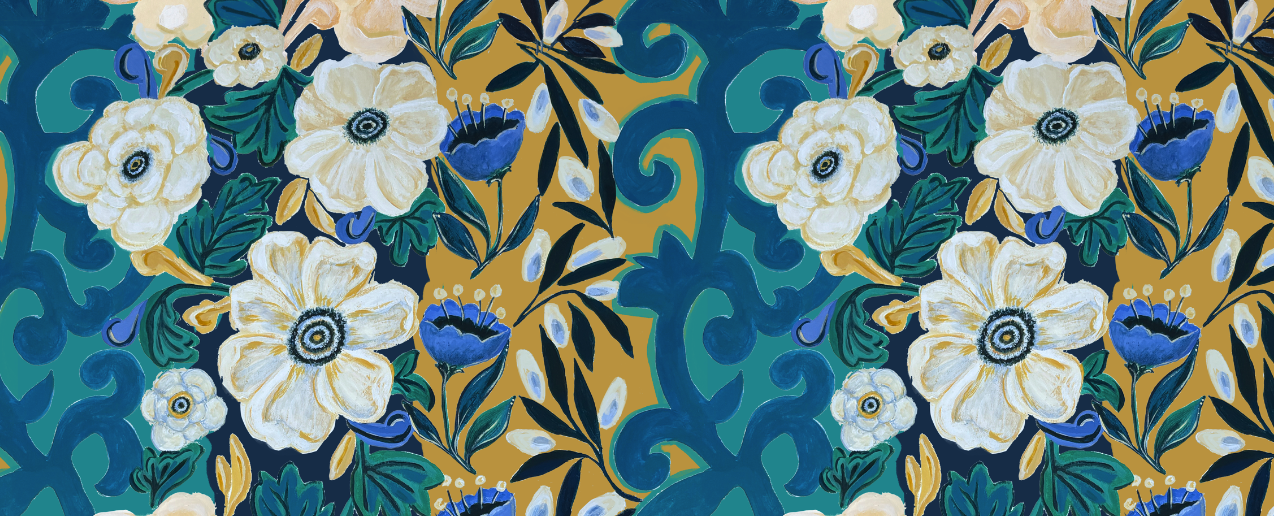 Gilded Bloom, 2025 Hand painted and digital illustration Pattern Size: 24 in. square