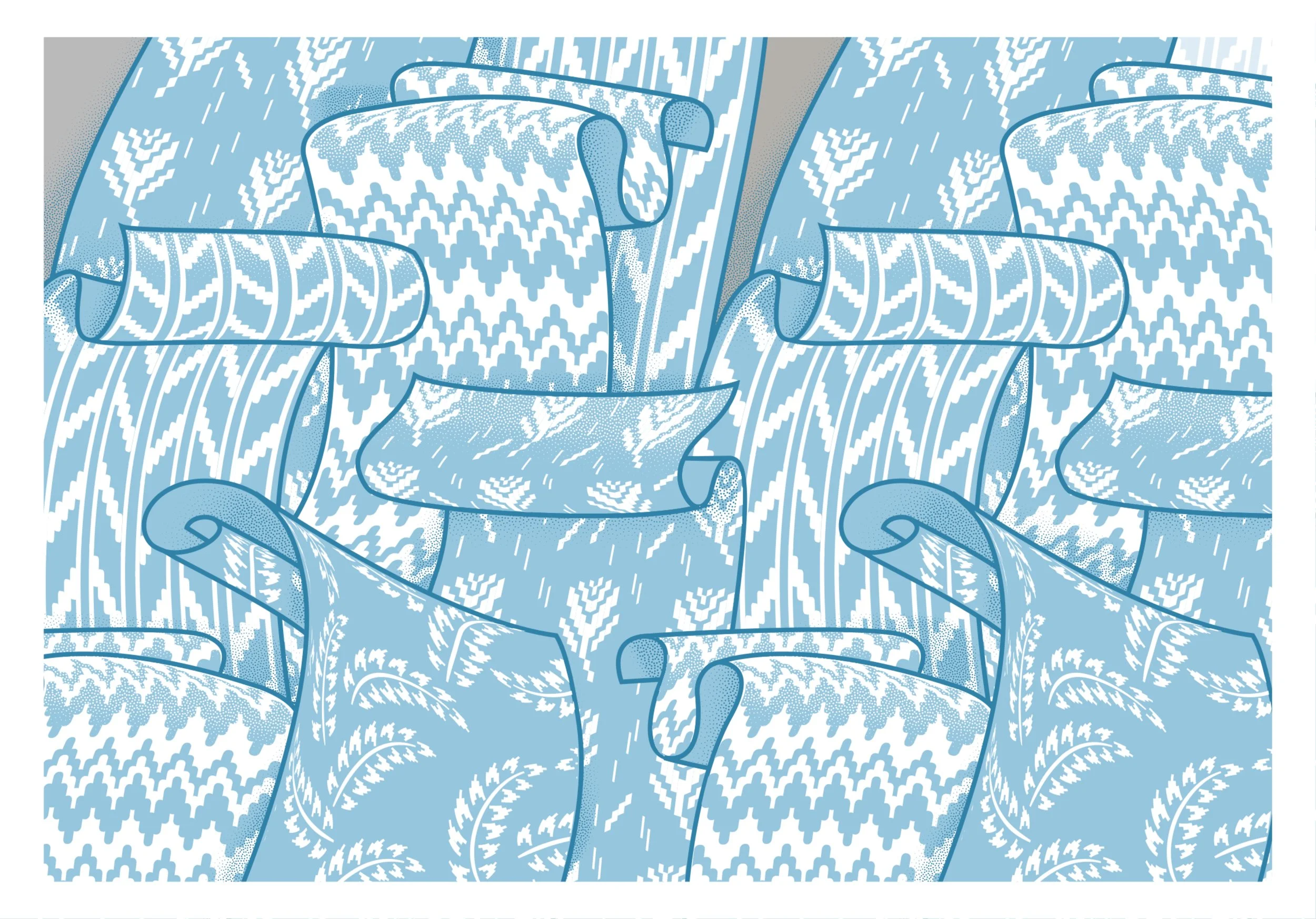 Rolling Papers (work in progress) is the result of spending hours poring over the beautiful NYSID wallpaper archive. I loved everything I saw, but I hit a wall trying to find one sample that would be a load-bearing inspiration for a brand-new design. Each print and painting pulled me in a different direction - each appealing, but none definitively more than the others.